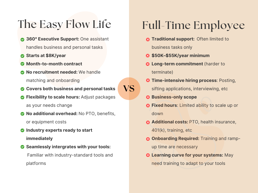 Our signature Flow Method pairs you with a highly-vetted assistant who moves seamlessly between business and personal support
